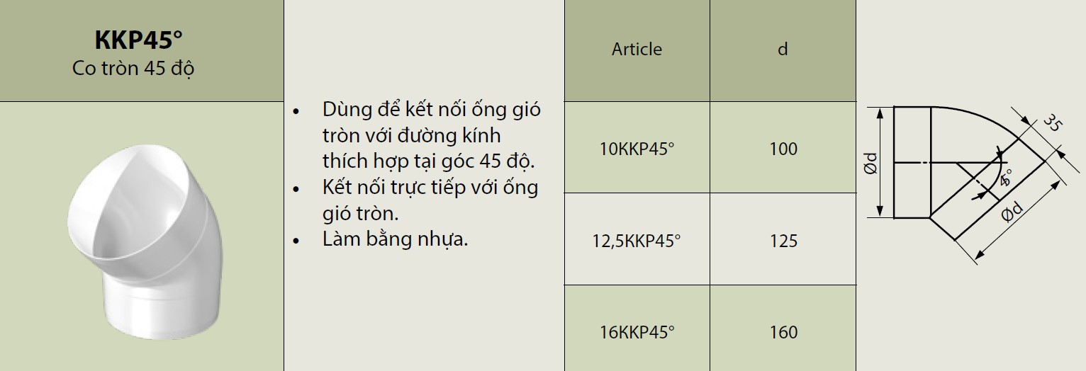 Co tròn - 45 độ - ERA - 10KKP 45 - 12.5KKP 45 - 16KKP 45