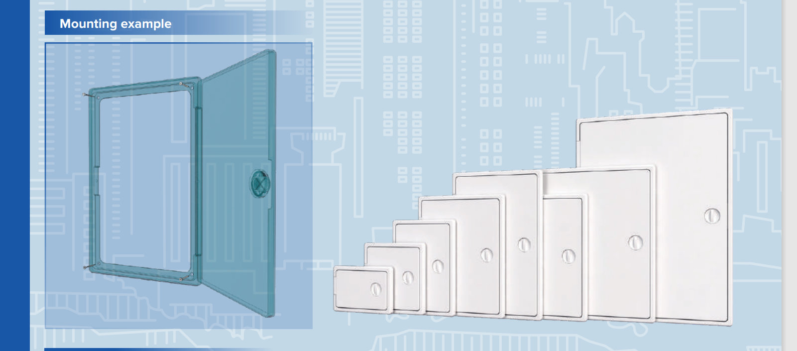 Thiết kế thông minh và tiện lợi: Với thiết kế đơn giản và tiện lợi, CỬA KỸ THUẬT NHỰA ABS ERA dễ dàng lắp đặt và sử dụng, có thể gắn trên tường hoặc gắn trần, được trang bị bộ khung linh hoạt nên có lắp được ở bên trái hoặc bên phải . Đáp ứng nhanh chóng các yêu cầu truy cập vào các hệ thống điện, hệ thống thông gió và thiết bị kỹ thuật khác.