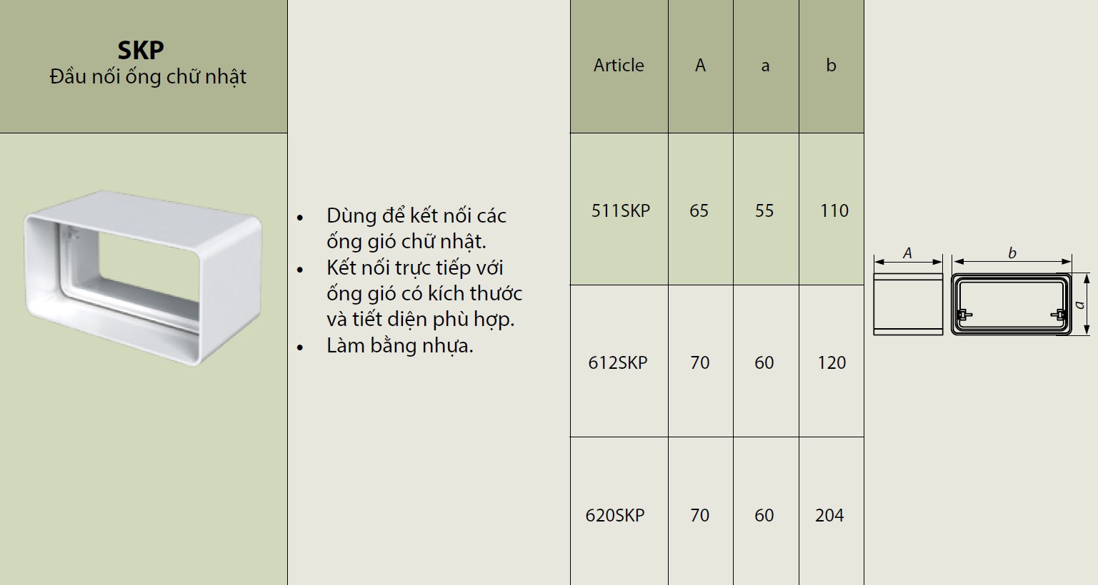 Nối ống chữ nhật ERA 612SКP / 620SKP
