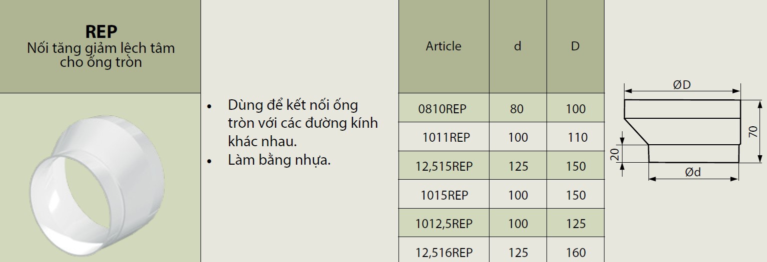 Nối tăng giảm ống gió nhựa tròn ERA
