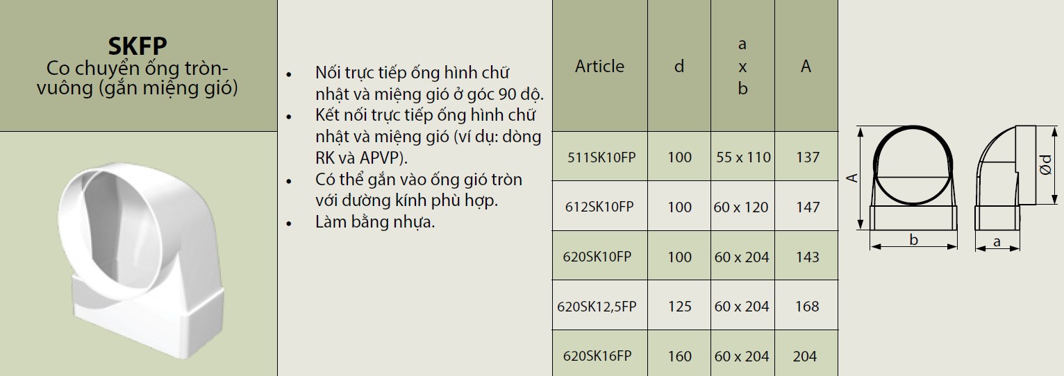 Co Chuyển Ống Vuông - Miệng Gió Tròn - ERA - 612SK10FP - 620SK10FP - 620SK12.5FP - 620SK16FP