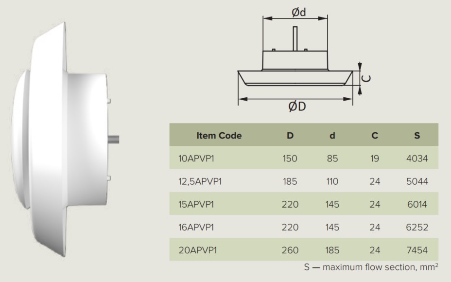 Cửa gió kiểu đĩa tròn nhựa không cổ (Dạng lồi) ERA - 10APVP1 - 12.5APVP1 - 15APVP1 - 16APVP1 - 20APVP1