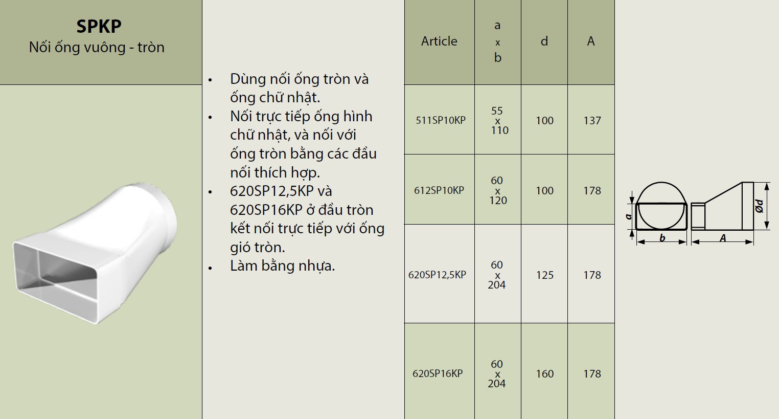 Nối Chuyển Ống Vuông - Tròn - ERA - 612SP10KP - 620SP12.5KP - 620SP15KP - 620SP16KP