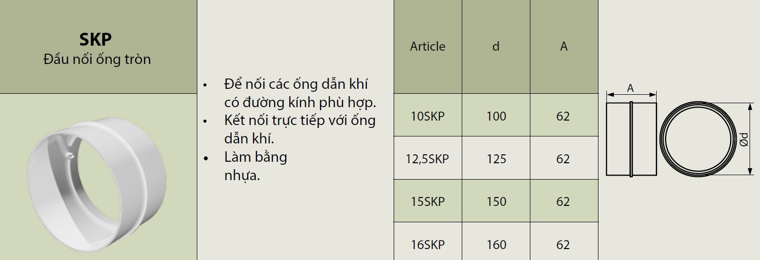 Nối ống gió nhựa tròn ERA - 10SKP - 12.5SKP - 15SKP - 16SKP