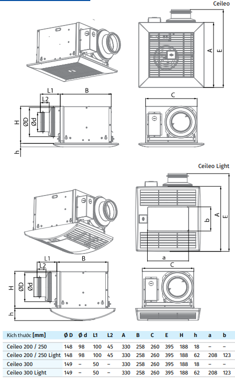 Quạt Ceileo Light đều được trang bị đèn LED tiết kiệm năng lượng