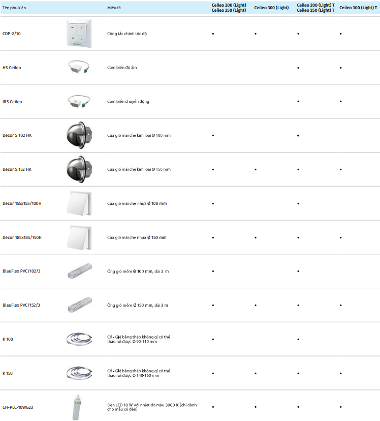 Quạt được điều khiển bằng công tắc tốc độ CDP-2/10 (có sẵn dưới dạng phụ kiện và được mua riêng).
