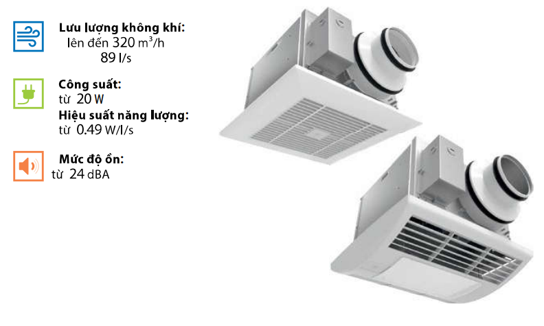 Quạt ly tâm lắp trần có công suất thấp và độ ồn thấp