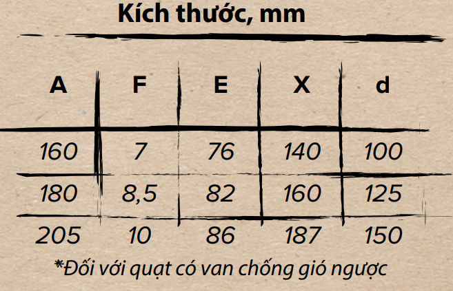 Dòng quạt có ba kích cỡ. Sản phẩm có mặt trước siêu mỏng với cửa chớp thẳng gói gọn trong một thiết kế hiện đại. Ngoài ra, quạt có thể được trang bị lưới chống muỗi, công tắc kéo, hẹn giờ và có thể có thế độ thông gió.