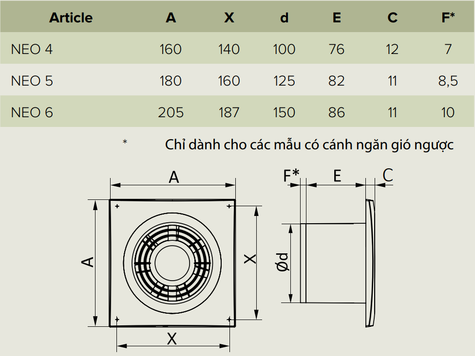 KÍCH THƯỚC TỔNG THỂ