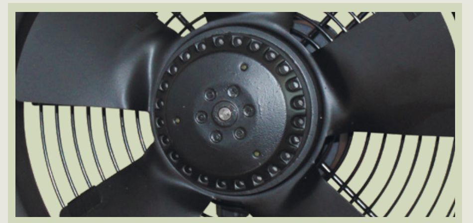 Quạt được trang bị một động cơ điện loại cánh quạt bên ngoài. Nó cũng có một bánh cánh quạt kim loại với lớp sơn tĩnh điện màu đen và thực hiện các lưỡi quạt hình lưỡi liềm, cân bằng động để giản tiếng ồn tốt hơn.