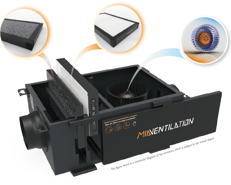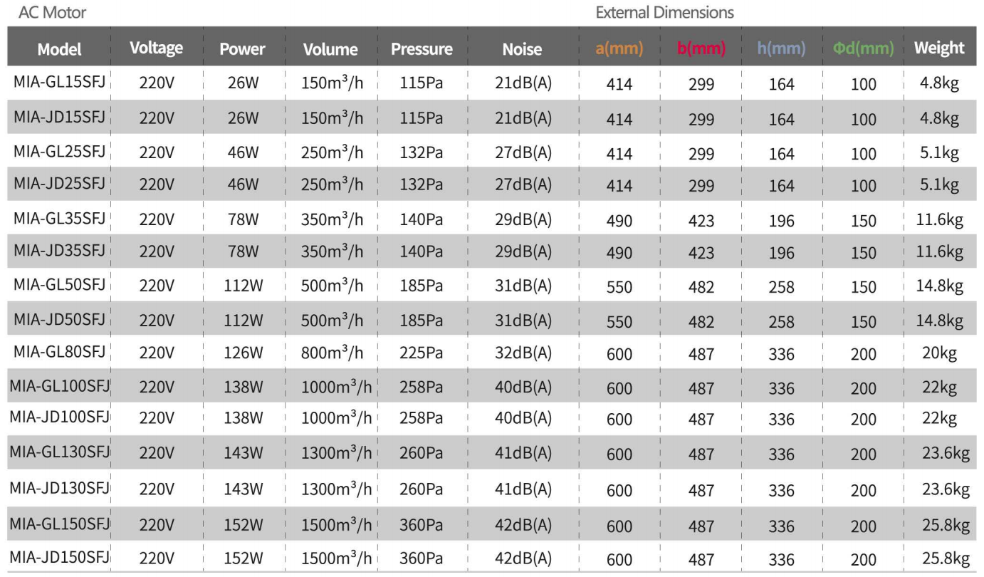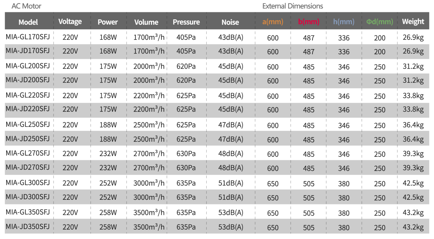 * Thông số kỹ thuật Quạt cấp gió tươi siêu êm với 02 bộ lọc hiệu MIA: