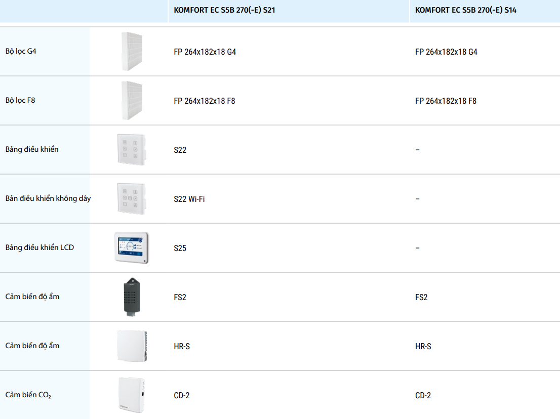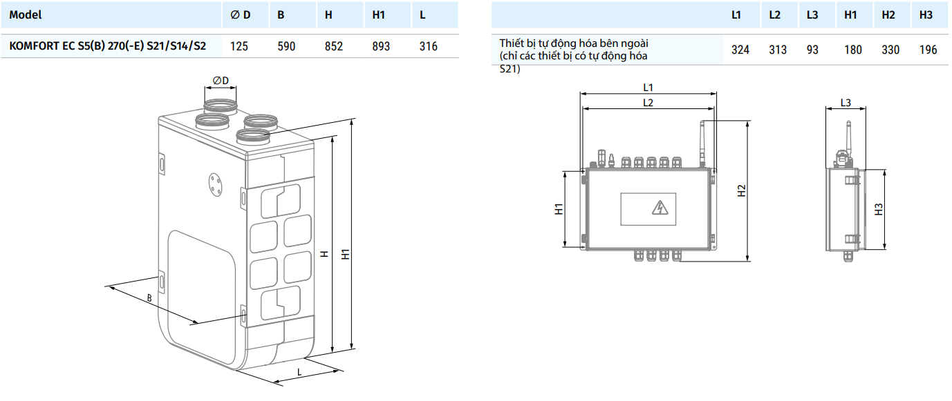 - Các thiết bị KOMFORT EC S5B 270 (-E) S14 được trang bị hệ thống tự động hóa tích hợp và bảng điều khiển cảm biến treo tường S14 với đền LED chỉ báo.
