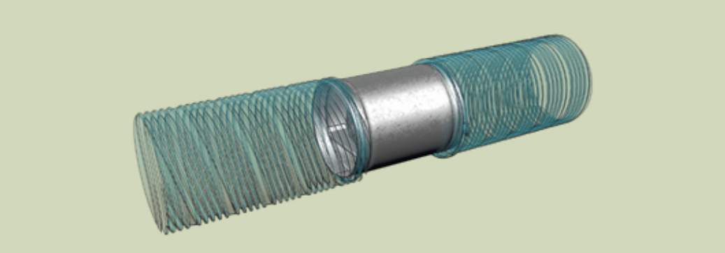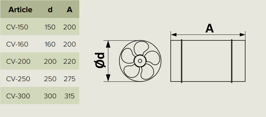 Quạt CV được gắn vào ống dẫn khí mềm bằng nhôm của dòng VA được cố định bằng vòng đệm thép.